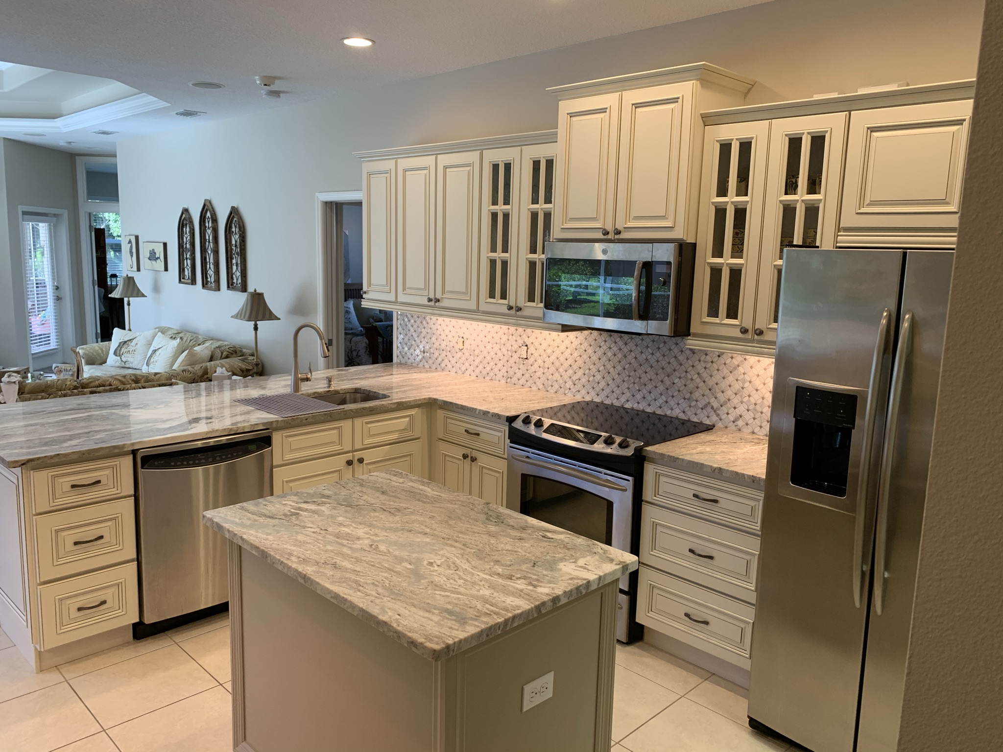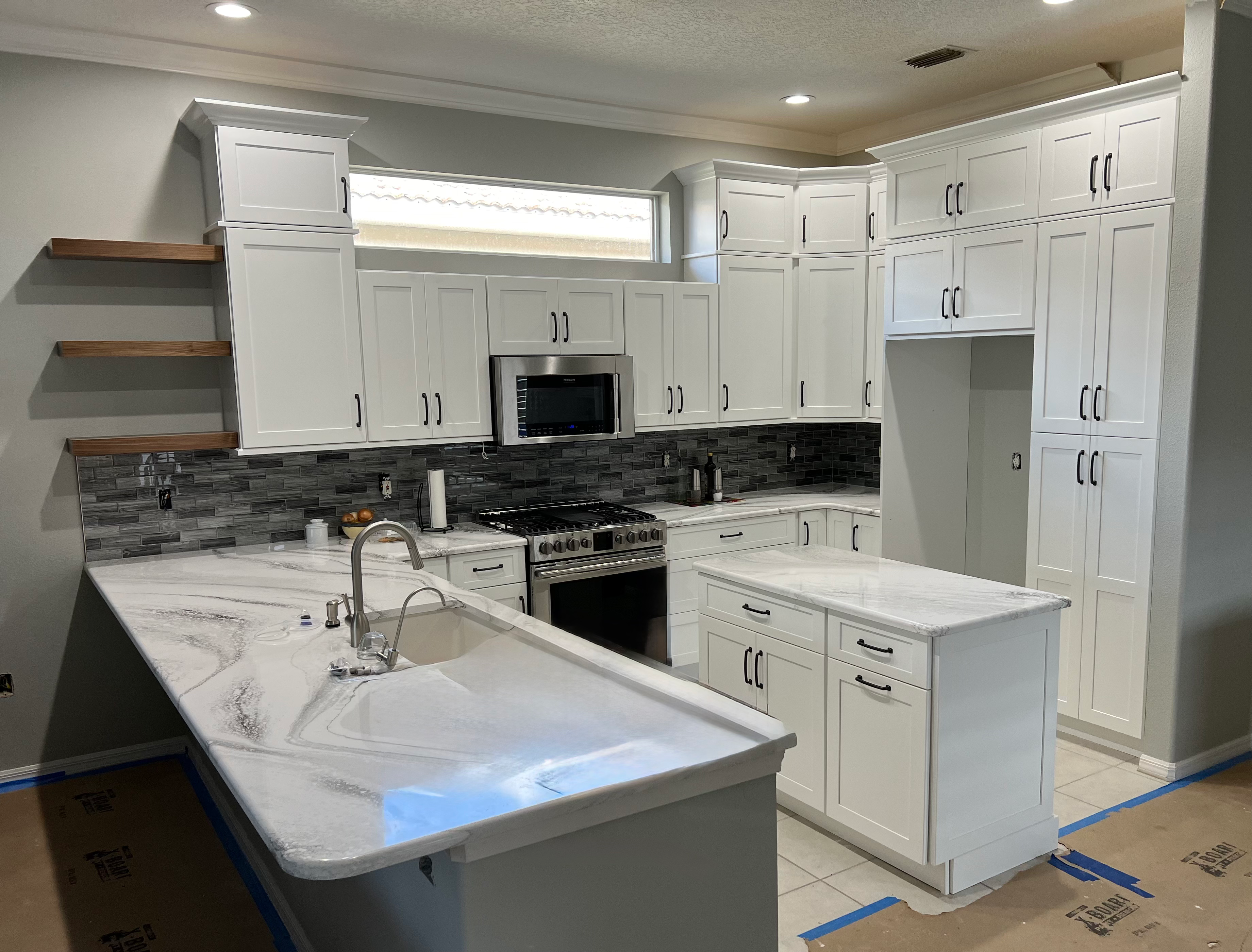 Kitchen Remodel with functional Island, Floating shelves and Stack Cabinets for extra storage