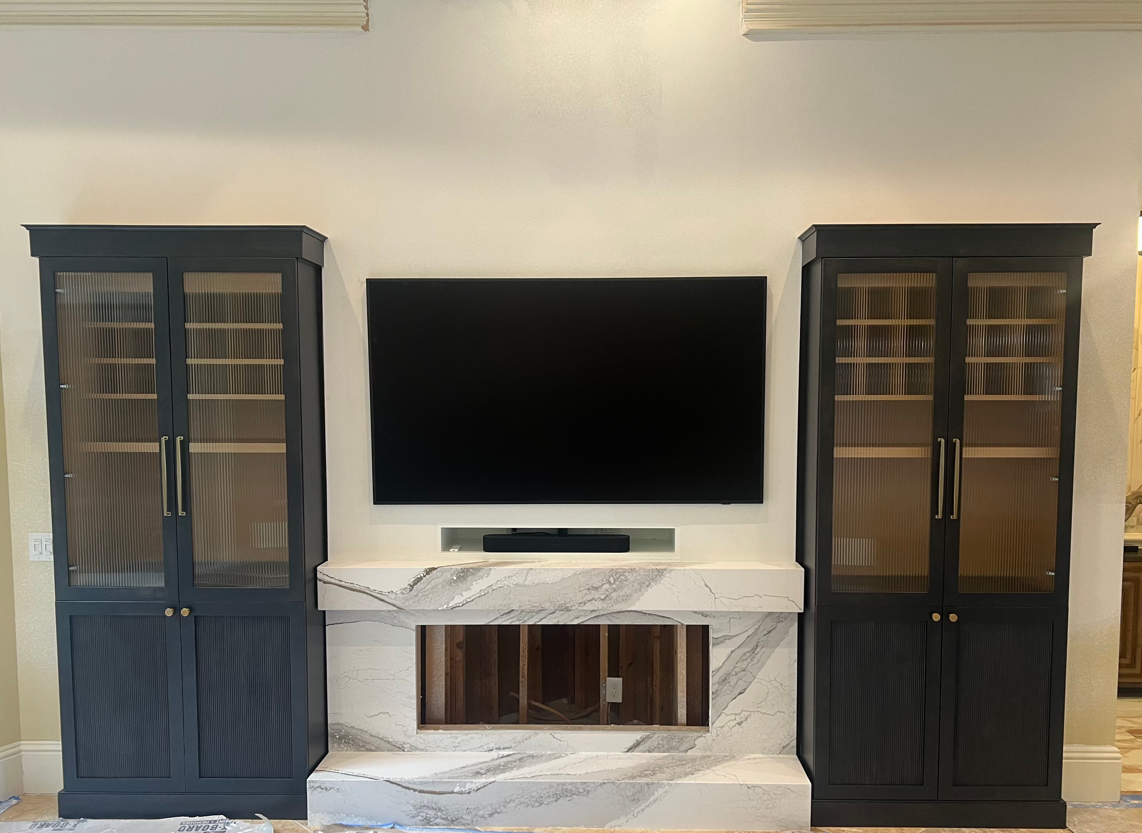 Twin Custom Cabinet next to Fireplace